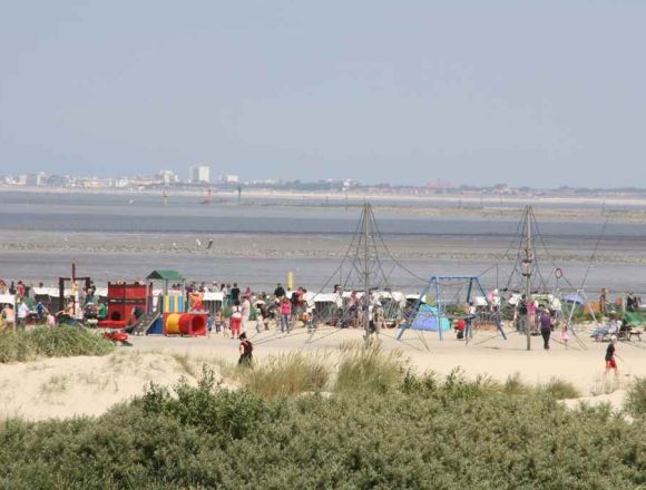 Strand und Haus des Gastes Norddeich1992 erfolgte die Einweihung des Nationalpark-Zentrums, da das Wattenmeer zum Nationalpark erklärt wurde.
